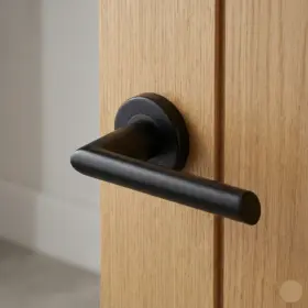 M Marcus Claverley Door Handles On Square Rose, Smooth Black Iron (Sold In Pairs)