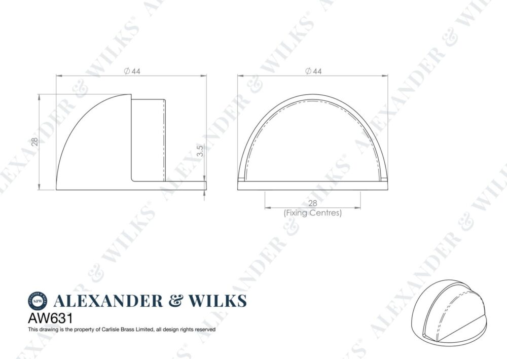 Alexander And Wilks Floor Mounted Oval Shielded Doorstop 45mm Pol Brass Unlacq AW631PBL
