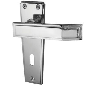 Deco Door Handles On Backplate, Polished Chrome
