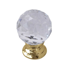 Faceted Glass Cupboard Door Knob, Polished Brass