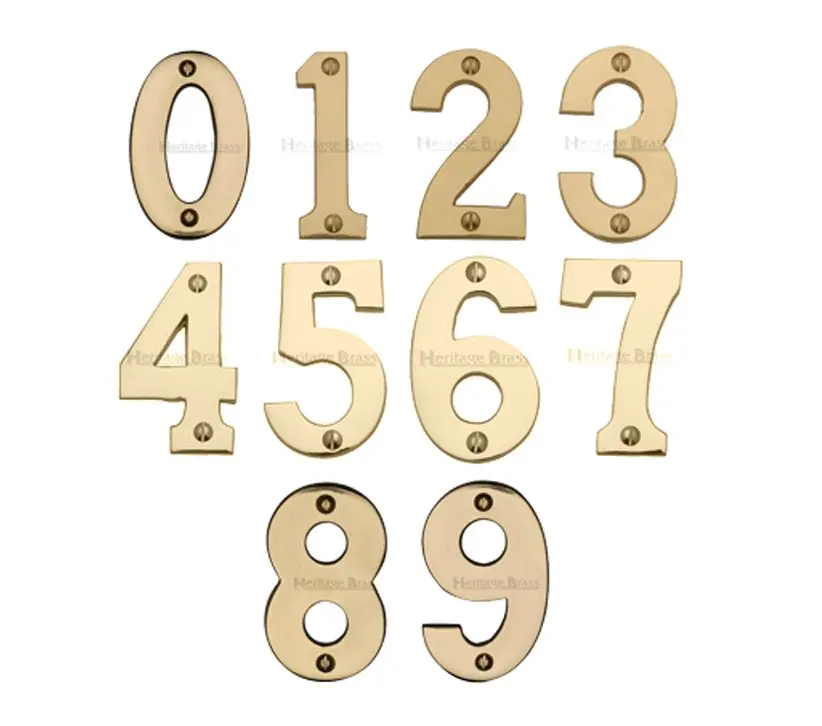 Heritage Brass 0-9 Screw Fix Numerals (76Mm – 3″), Polished Brass