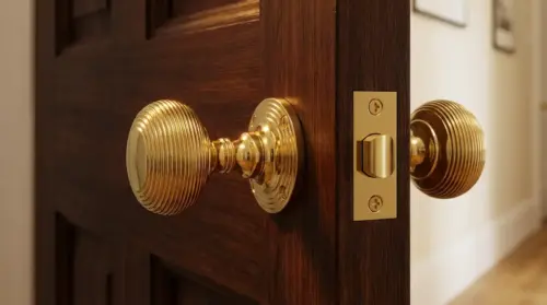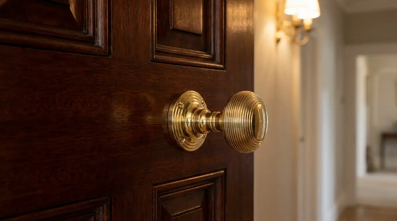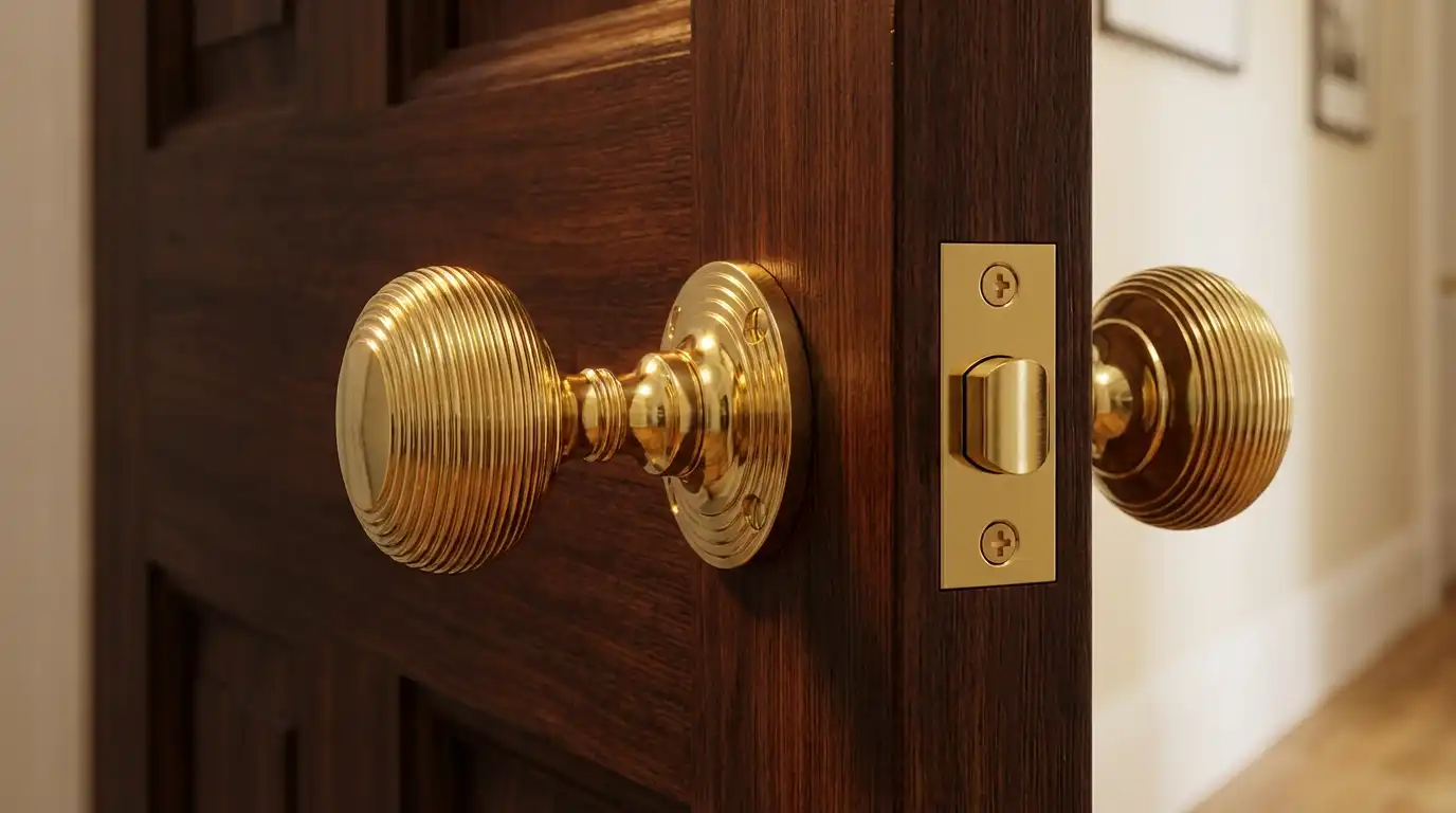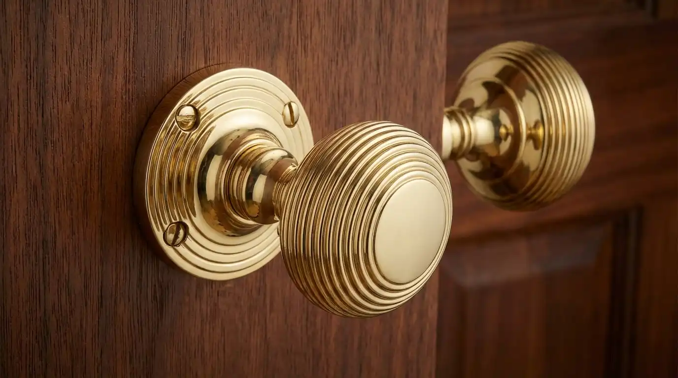 Heritage Brass Reeded Rim Door Knob, Polished Brass (Sold In Pairs)