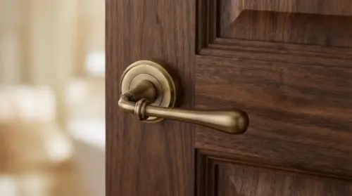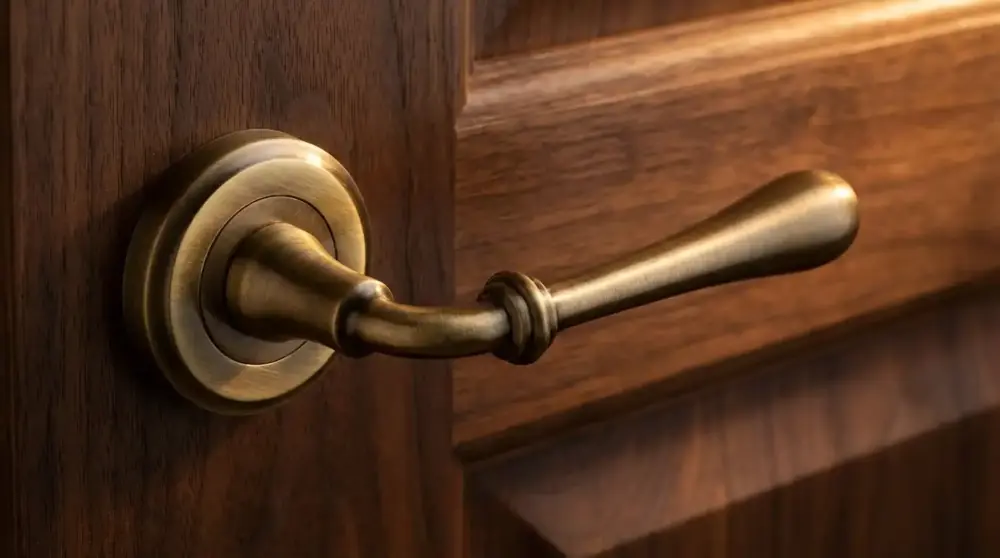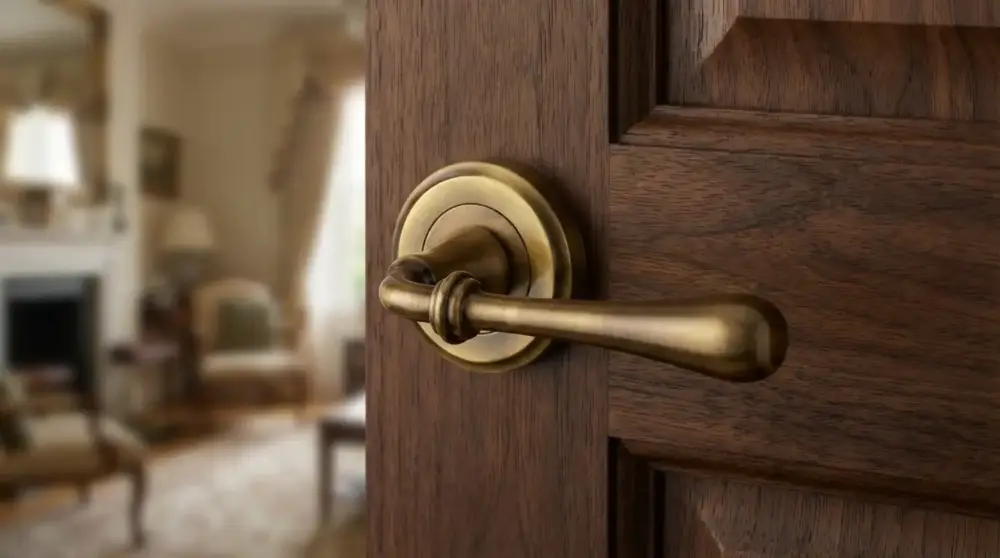 The round rose pattern, which also adds a touch of elegance, improves the overall aesthetic appeal. Your door’s focal point is the elaborate handle because of the appealing contrast between its smooth, circular base and decorative handle.
