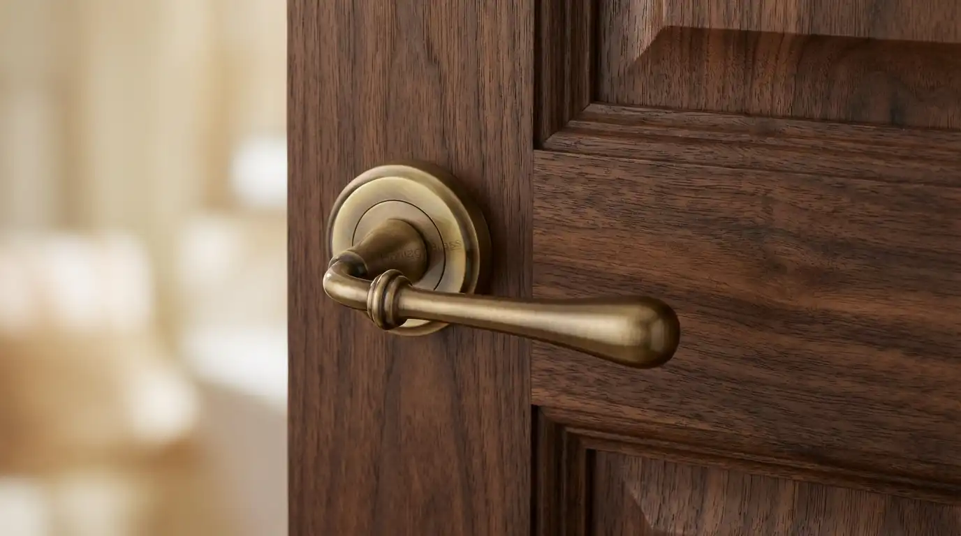 The Classical Elegance and Charm of the Heritage Brass Roma Antique Brass Door Handles on Round Rose is ageless.