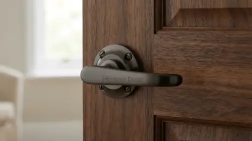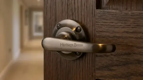 The Heritage Brass Windsor Door Handles on Round Rose in a chic Matt Bronze finish will accentuate your home’s classic charm. The warm and inviting Matt Bronze finish gives your doors a hint of warmth and luxury while creating an elegant statement.