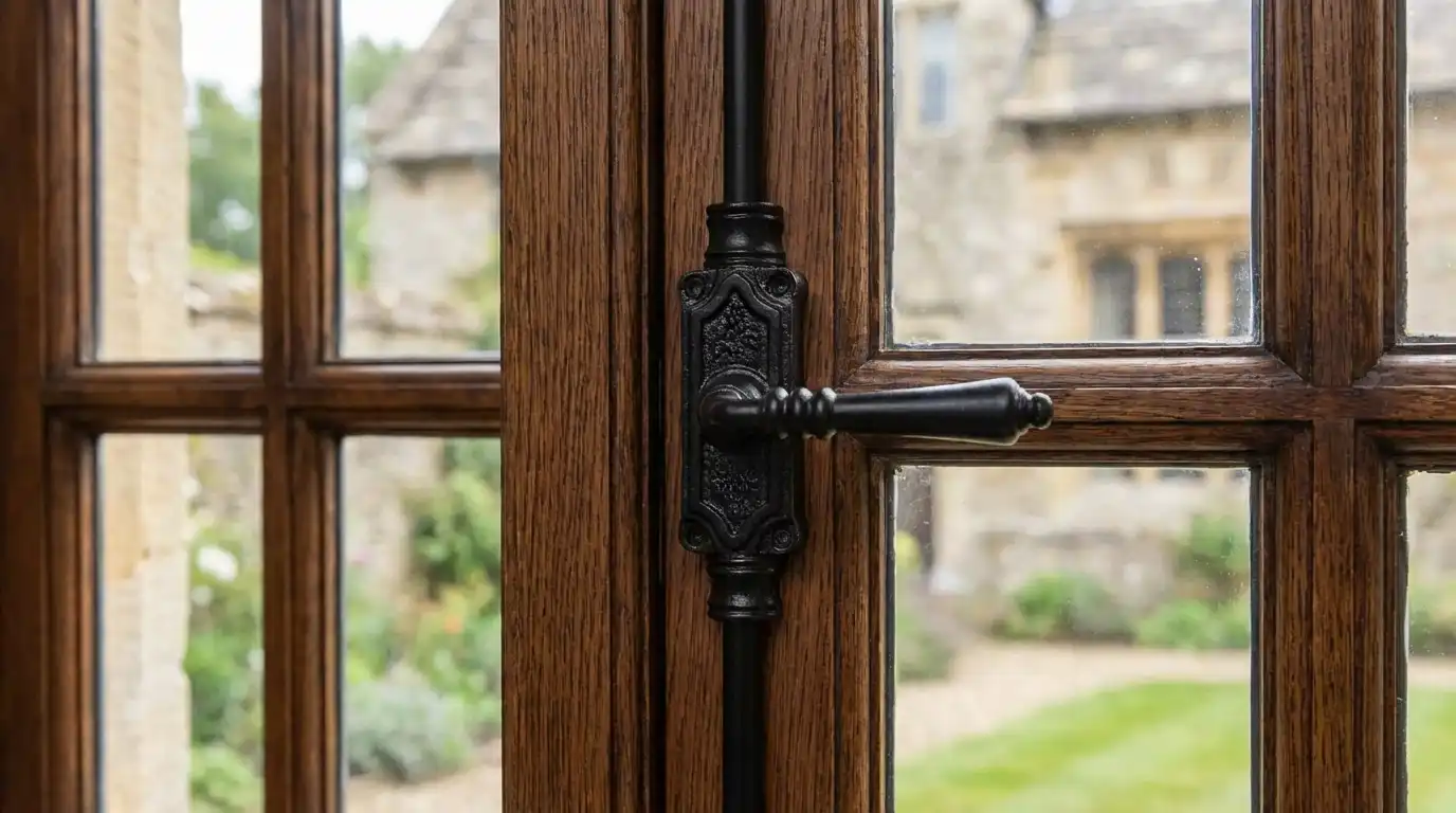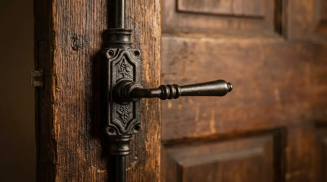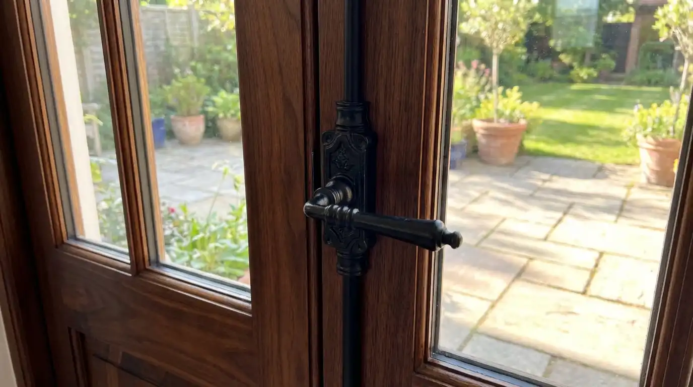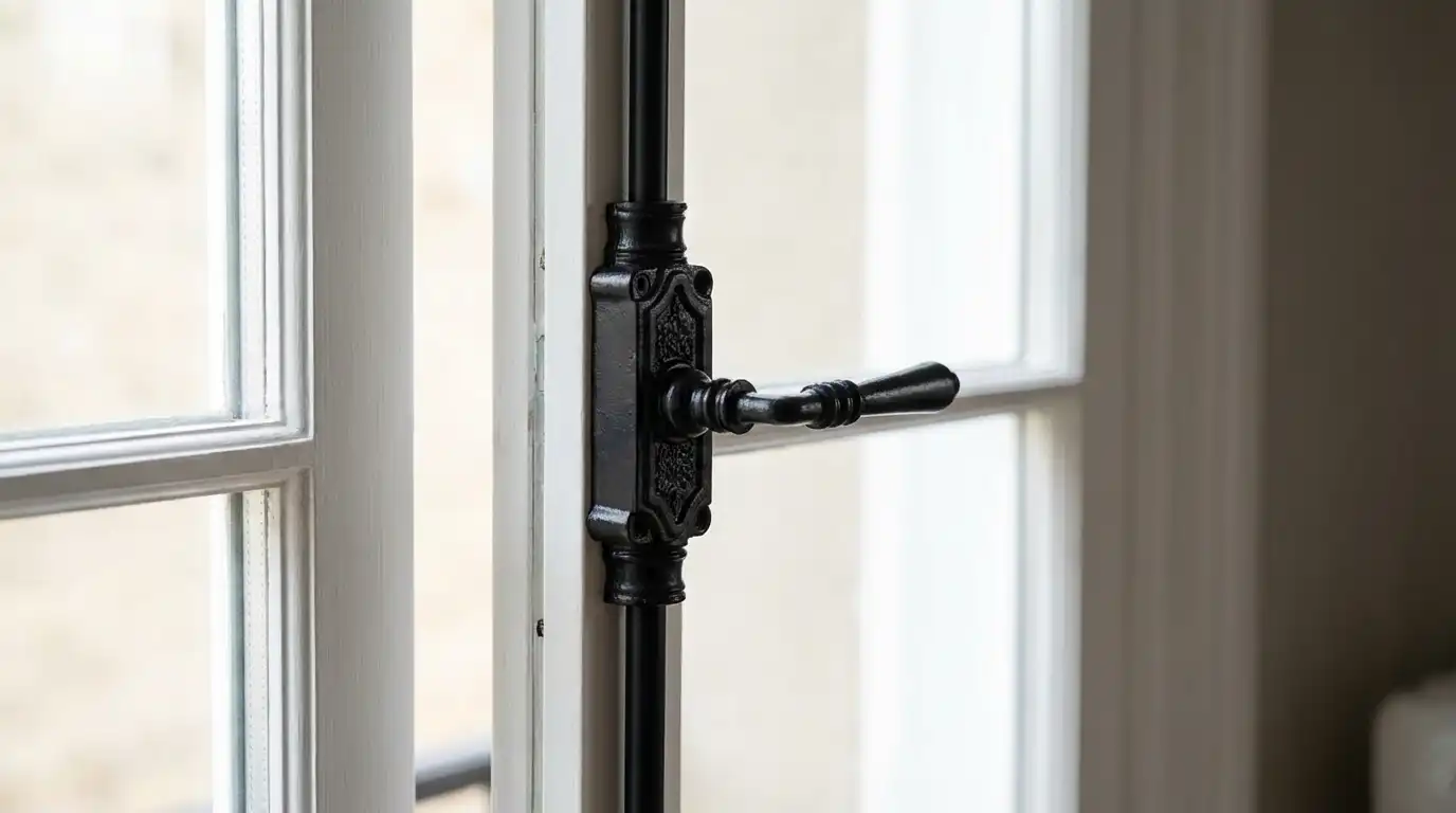 Lever Handle Door Espagnolette Bolt in Antique Black for Door Upto 9 Feet (Right & Left Hand). This set will fit one door up to 9 feet tall and can be cut, if desired, to fit windows or smaller doors. Made of Iron. Fits doors up to 9 feet tall, and can be cut to shorter lengths. Espagnolette bolt hardware