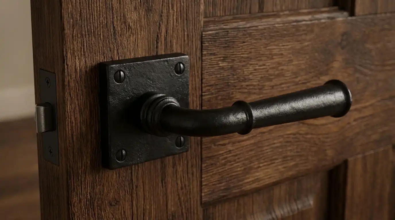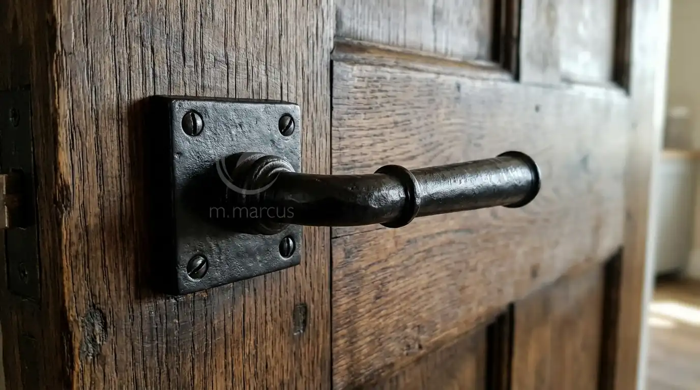 - To meet modern design preferences M. Marcus have removed the deep surface indentations found in traditional black ironmongery. Leaving only the natural surface grains to create a rustic yet smoother contemporary appearance. These black iron door handles will complement traditional solid wooden and hollow flush doors