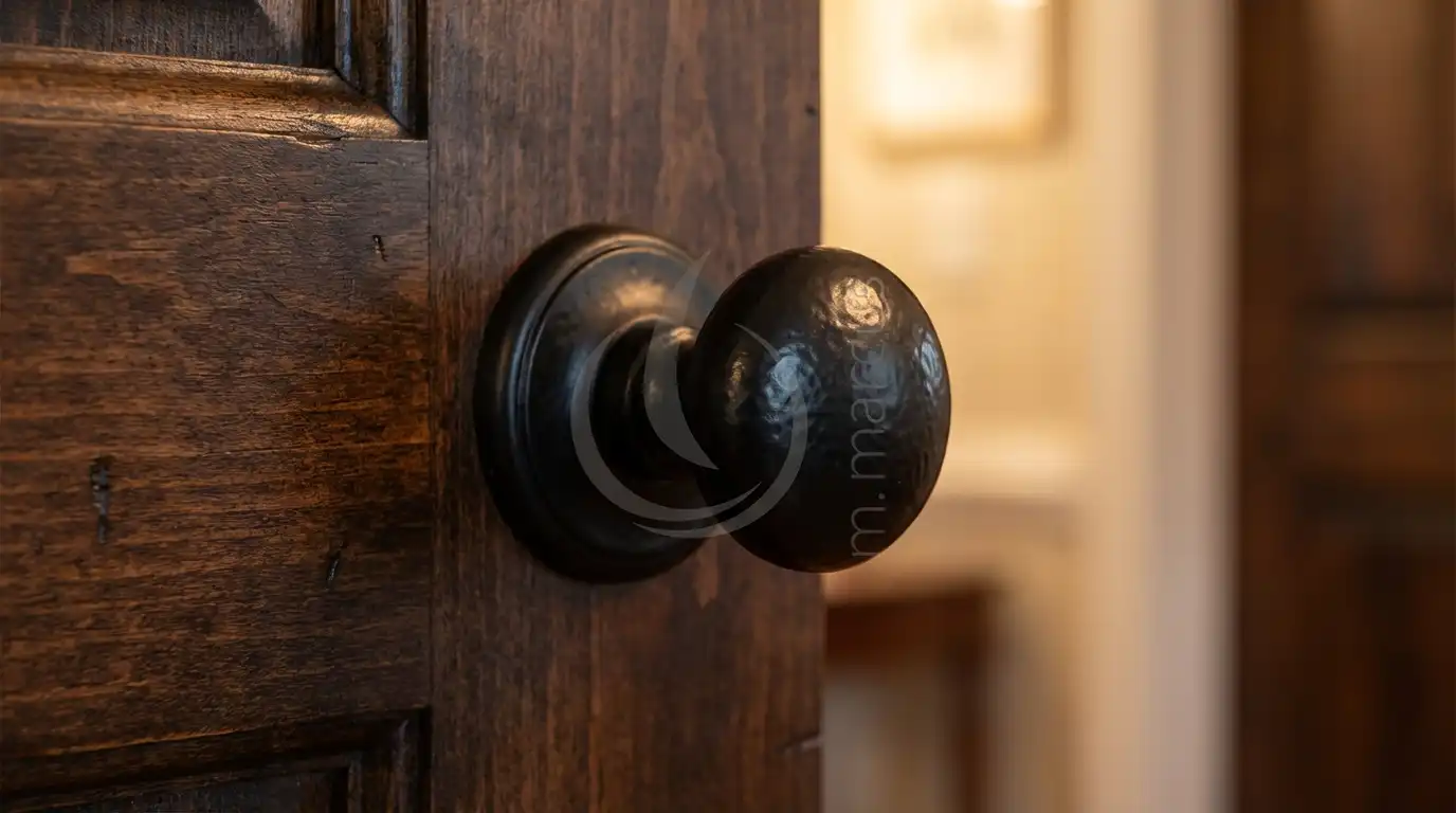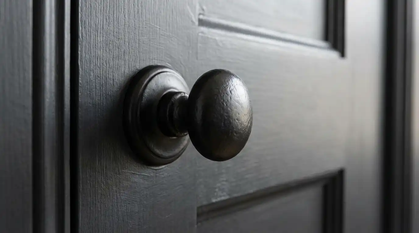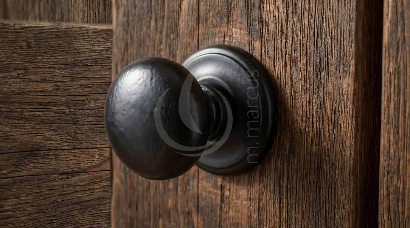M Marcus Round Centre Door Knob (80Mm Dia Rose), Smooth Black Iron