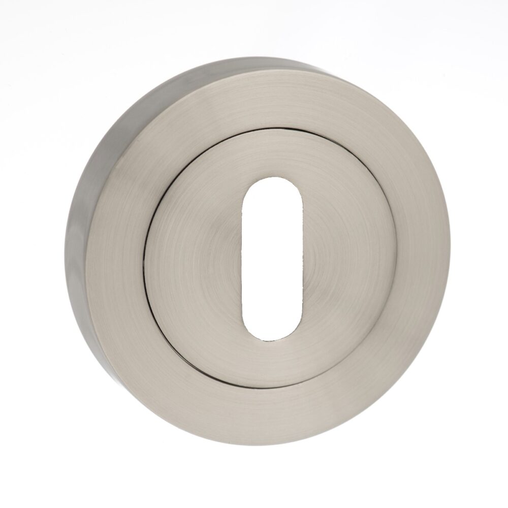 Millhouse Brass Key Escutcheon on Round Rose – Satin Nickel MHRKSN